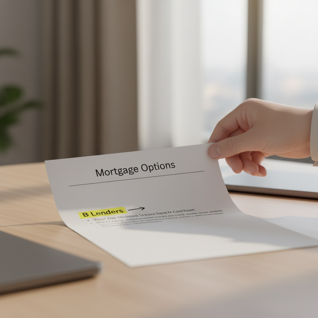 B lenders work with clients who have mild credit issues or difficulty proving income. They mainly lend in urban areas, while private lenders often serve smaller towns. Credit unions also help buyers with bad credit or limited income documentation.